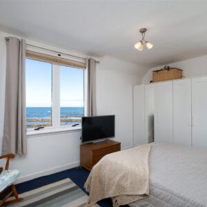 Upstairs, the accommodation is accessed via the attractive wooden staircase with a classic runner. The principal bedroom benefits from open sea views and a storage cupboard. There are two further bedrooms, one of which currently set up as a dressing room with fitted storage, offering flexibility to suit different needs. Above the landing, an original fitted ladder provides access to the attic. Historically used by fishermen to store their nets, the attic is easily accessible and features attractive original floorboards, offering useful additional storage space.
