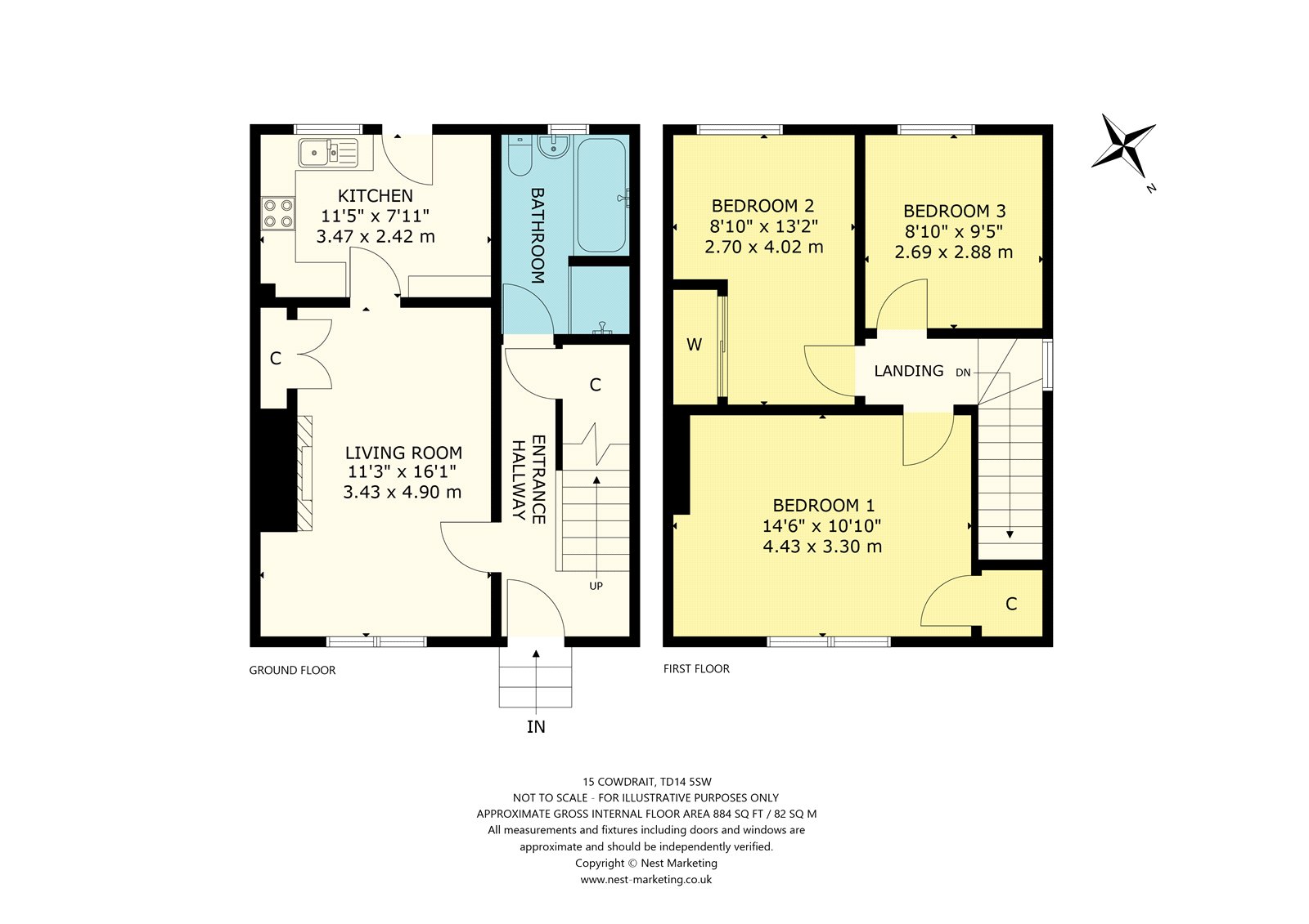 Ground Floor – Entrance Hallway, Sitting Room, Kitchen, Family Bathroom.