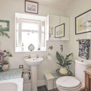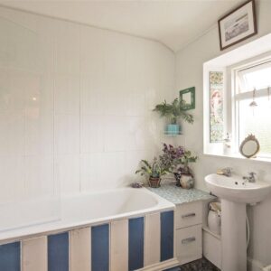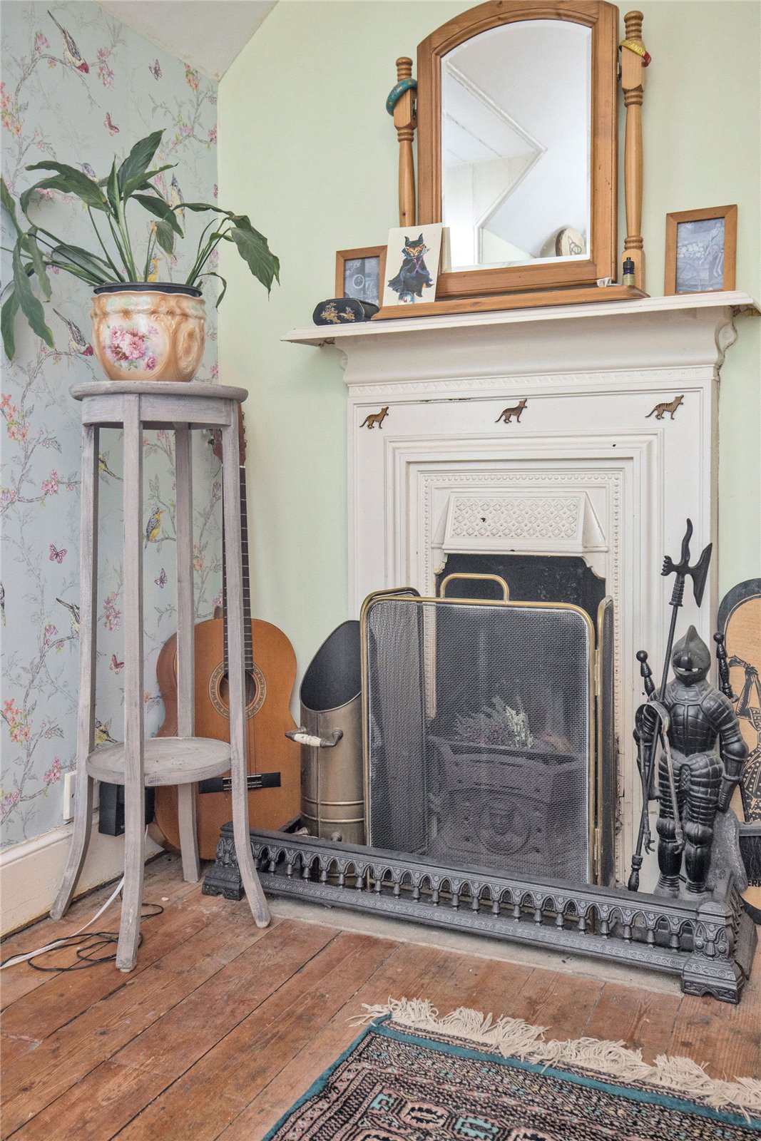 Upstairs, the first floor hosts two bedrooms. The principal double bedroom is bright and spacious, enhanced by a feature fireplace that adds charm and character to the space. The second bedroom also benefits from a delightful original fireplace and would make an ideal guest room, nursery or study.