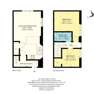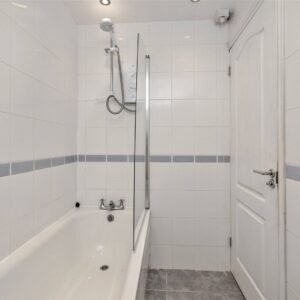 A staircase leads to the second floor where the sleeping accommodation comprises a bright double bedroom, and a further smaller bedroom (with built in storage), and a well-appointed family bathroom with bath and shower over.