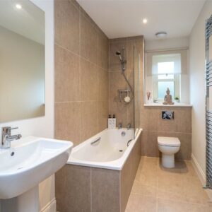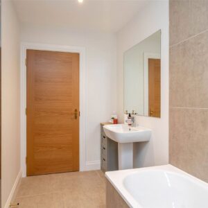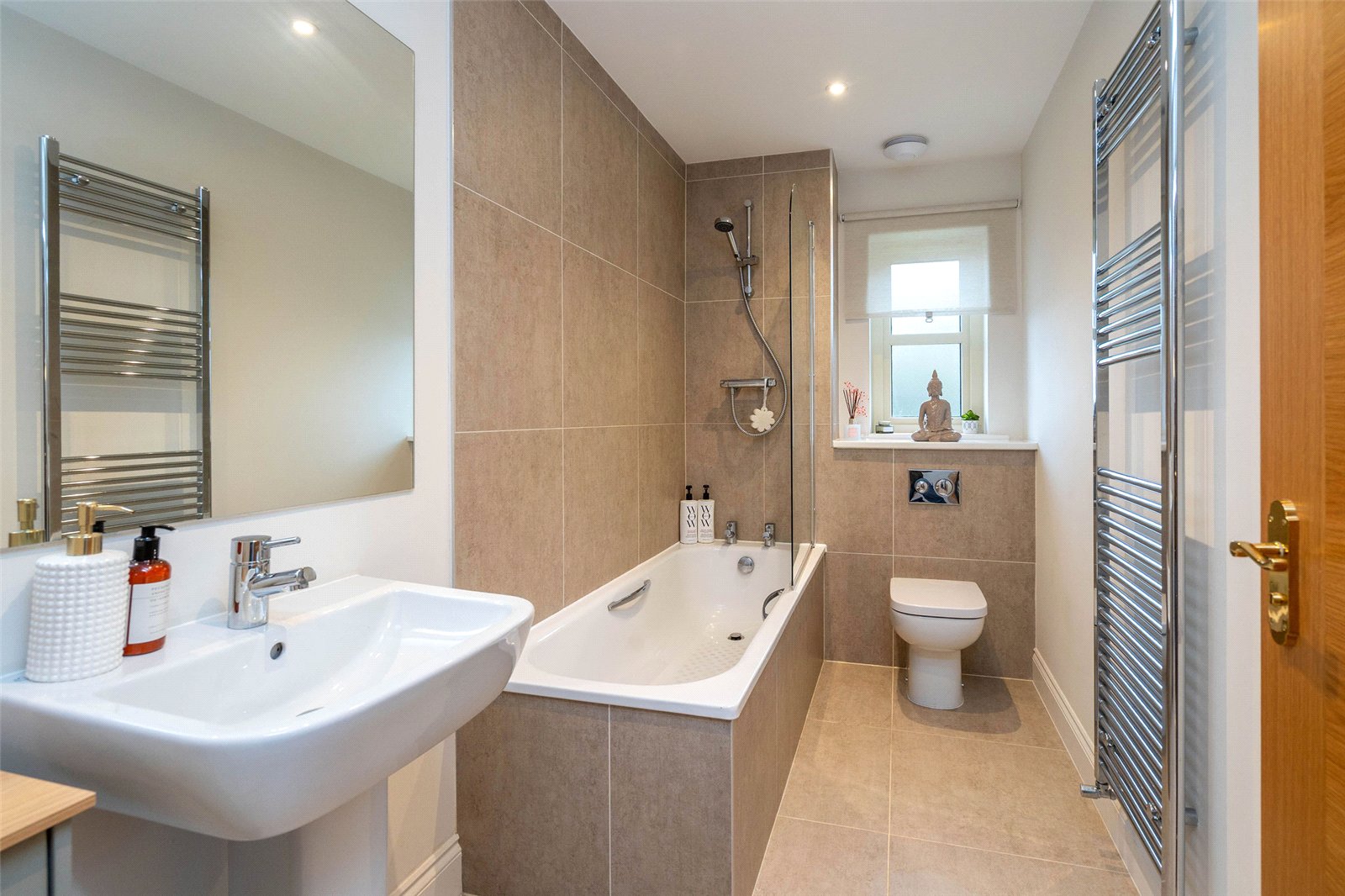On the first floor, there is a generous double bedroom with built-in wardrobes, a well-proportioned single bedroom also benefiting from built-in storage, and a modern family bathroom.
