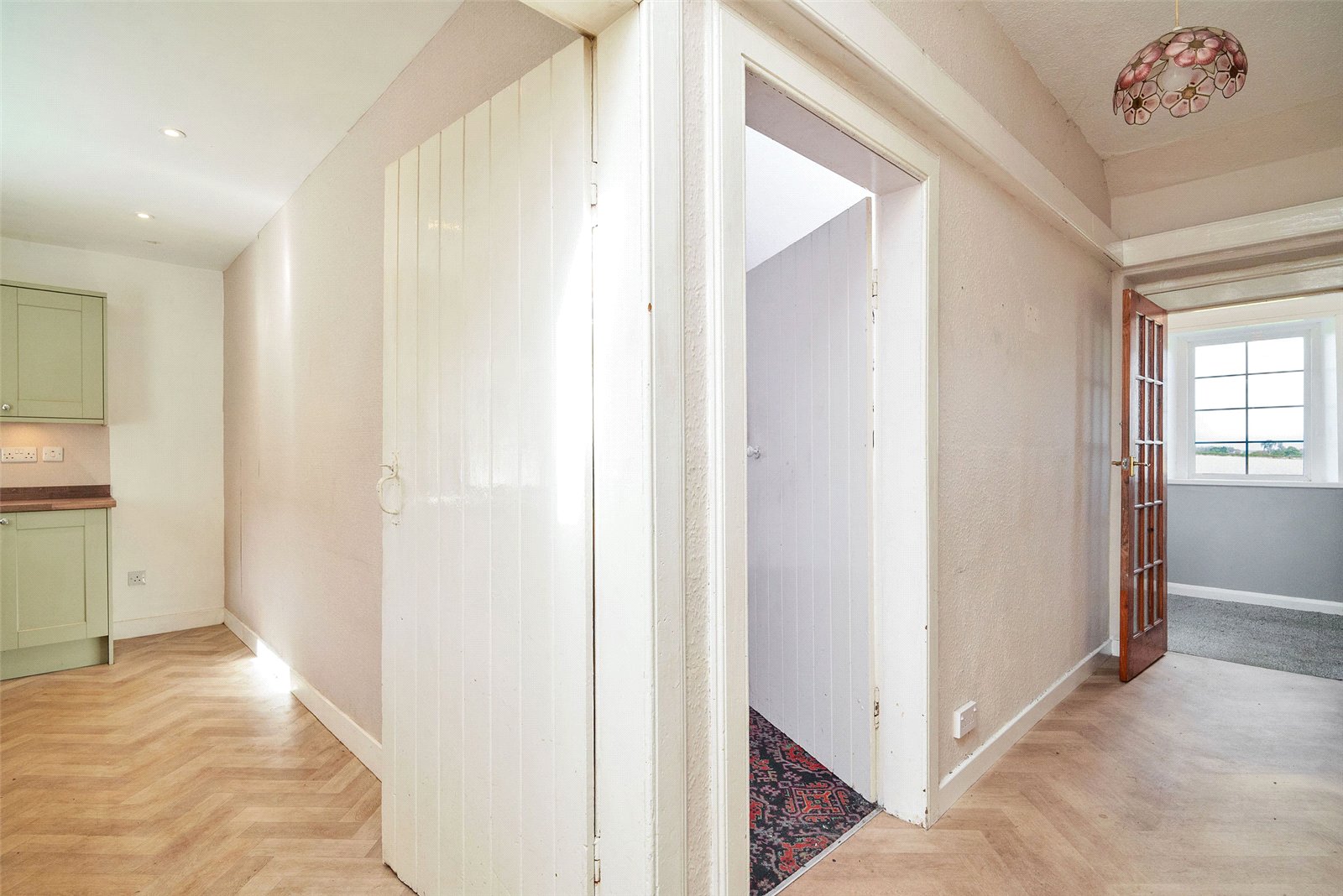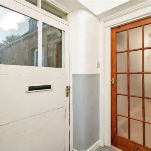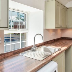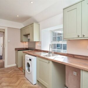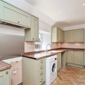 The galley kitchen features attractive sage green shaker-style cabinetry, adding a touch of charm and providing a solid foundation for further enhancement. At the front of the property, a generous porch offers excellent potential to be transformed into a characterful boot room, perfect for countryside living or busy family routines.