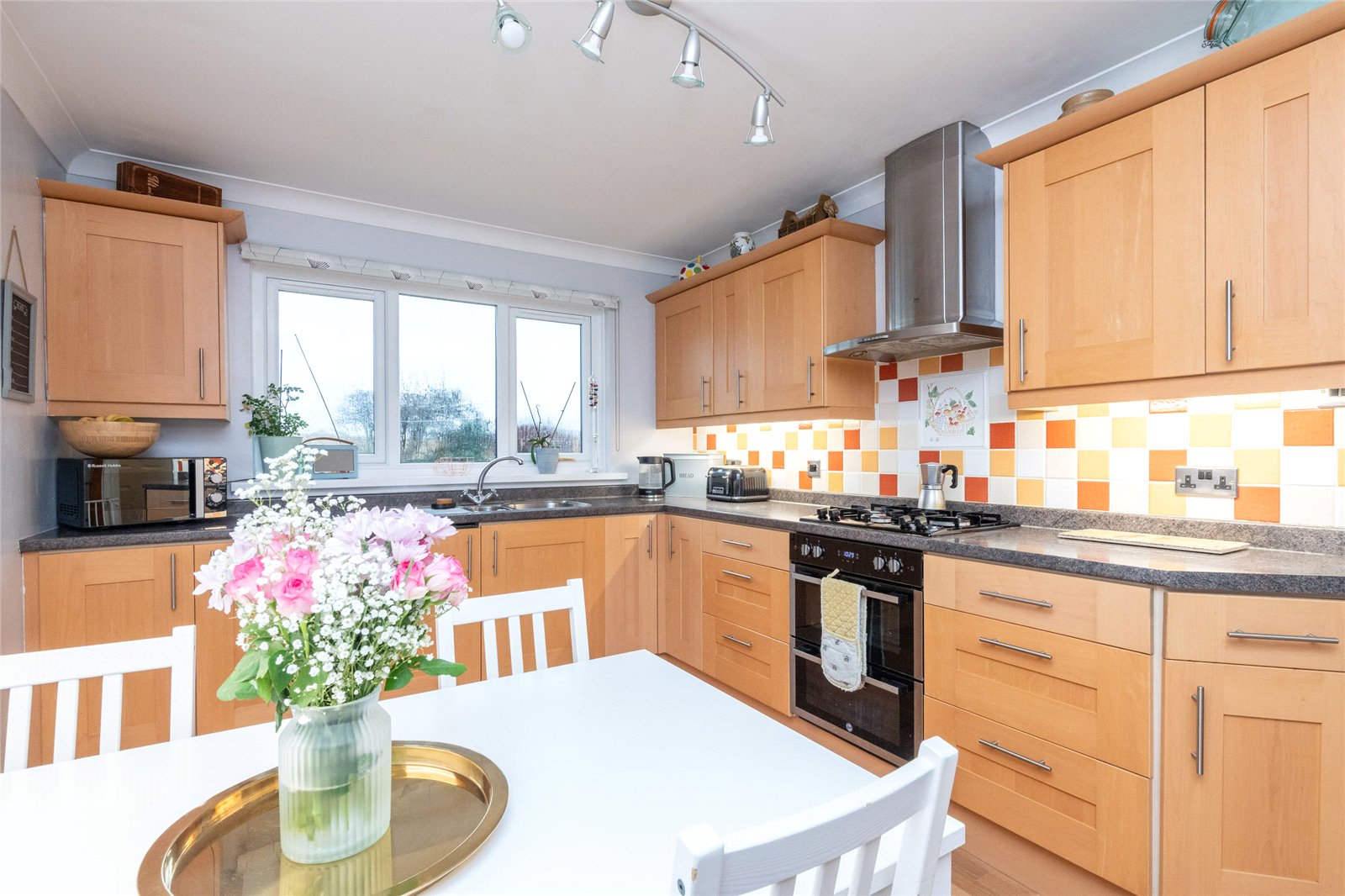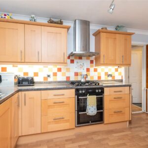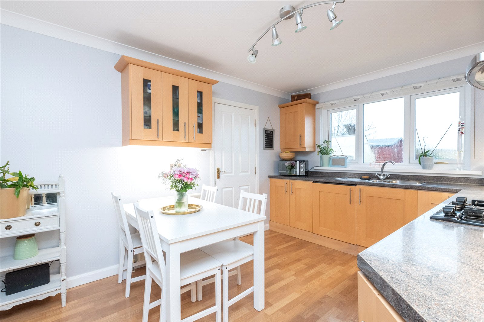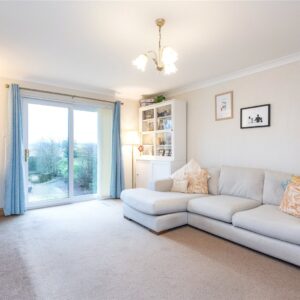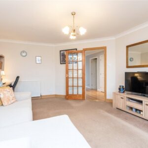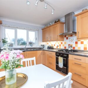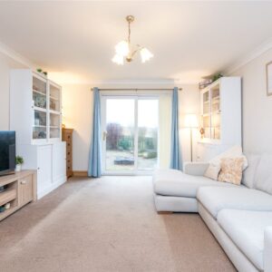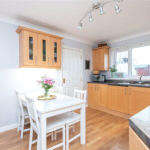 The welcoming entrance hallway provides access to all principal accommodation. The sitting room is a bright and inviting space, featuring sliding doors that open directly onto the rear garden, allowing plenty of natural light to flow in and creating an excellent connection between indoor and outdoor living. The dining kitchen offers a practical and sociable space for everyday cooking and dining, with a door leading through to the integral garage, where the current owners have created a useful utility area to the rear.