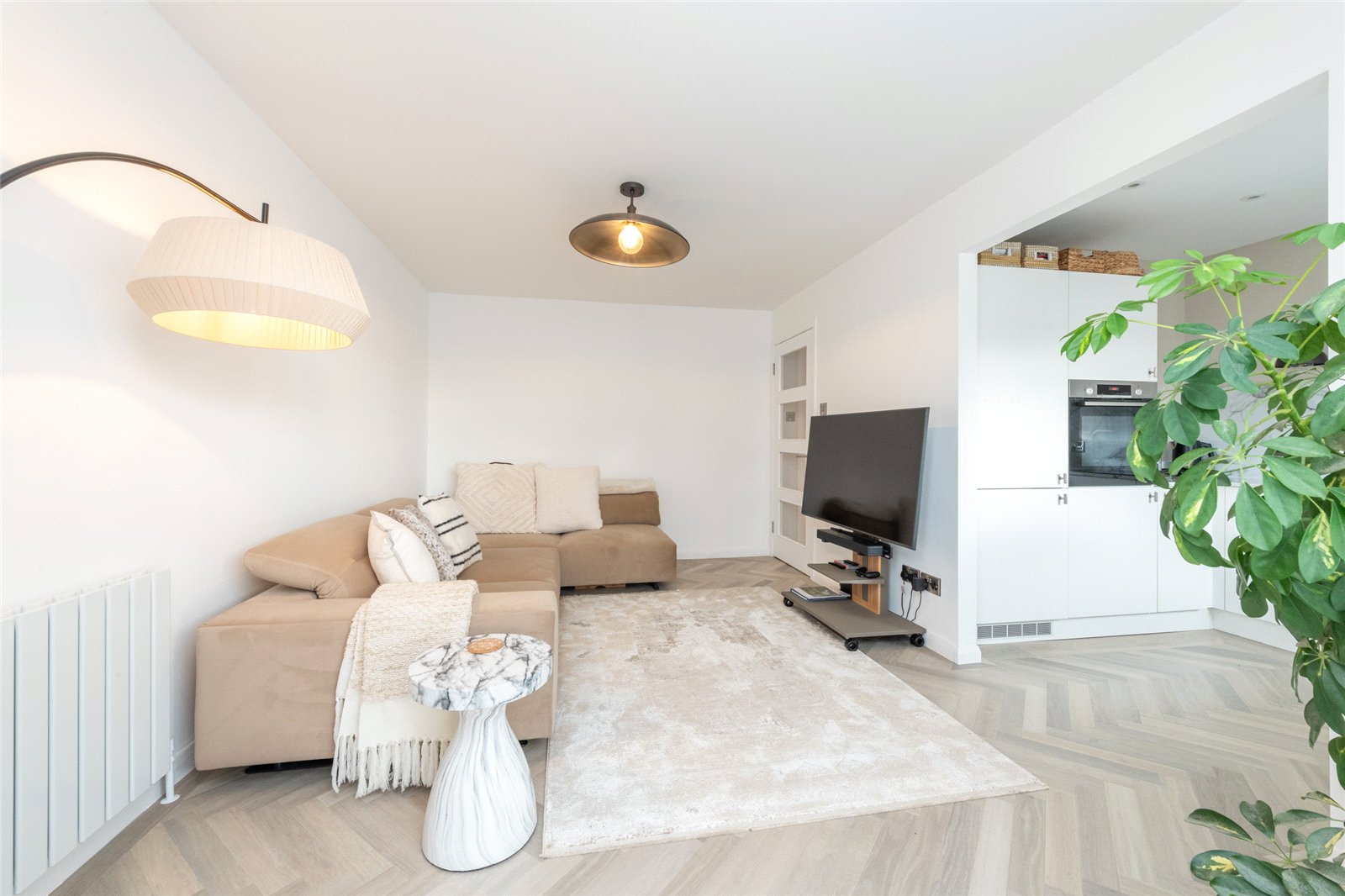 The accommodation comprises an entrance hall with a large storage cupboard, leading through to a light and airy sitting room. This inviting space features a bay window, perfectly positioned to take in the outstanding views. Adjoining the sitting room is a well-appointed kitchen, finished with modern cabinetry and integrated appliances.