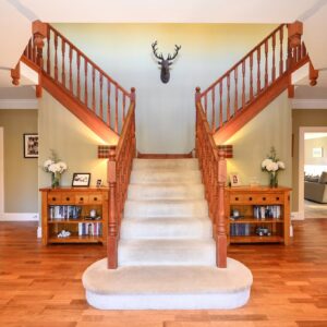 First Floor – Galleried Landing, Principal Bedroom with a Dressing Room and Luxurious En-Suite, En-Suite Double Bedroom, Three Further Double Bedrooms, Family Bathroom, Large Airing Cupboard.