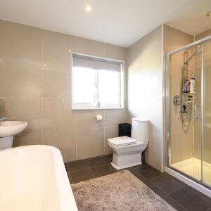 The first floor features a spacious galleried landing that enhances the home’s bright and airy feel. The principal bedroom includes a dressing room and a luxurious en-suite with a freestanding bath and separate shower. A second generous bedroom also benefits from its own en-suite bathroom and built-in wardrobes, providing both comfort and practicality. In addition, there are three further well-proportioned double bedrooms, each thoughtfully designed to offer plenty of space and light, making them ideal for family members or guests. The family bathroom is stylishly finished and includes modern fixtures, complementing the home’s high-quality design. Completing the first floor is a large airing cupboard, offering excellent storage solutions. Overall, this floor combines space, light, and luxury, creating a welcoming and uplifting living environment.
