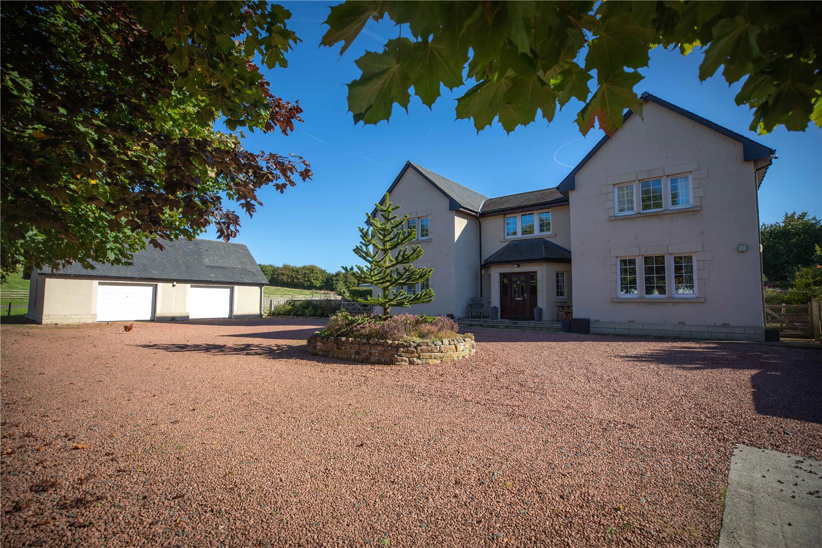 Greenlaw 4 miles, Earlston 6 miles, Kelso 9 miles, Coldstream 10 miles, Melrose 12 miles, Berwick 24 miles, Edinburgh 38 miles, Newcastle 75 miles, London, 367 miles. (All distances are approximate.)