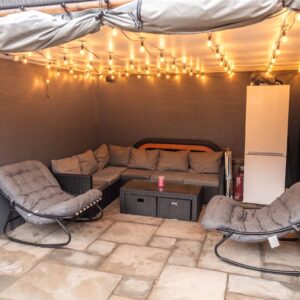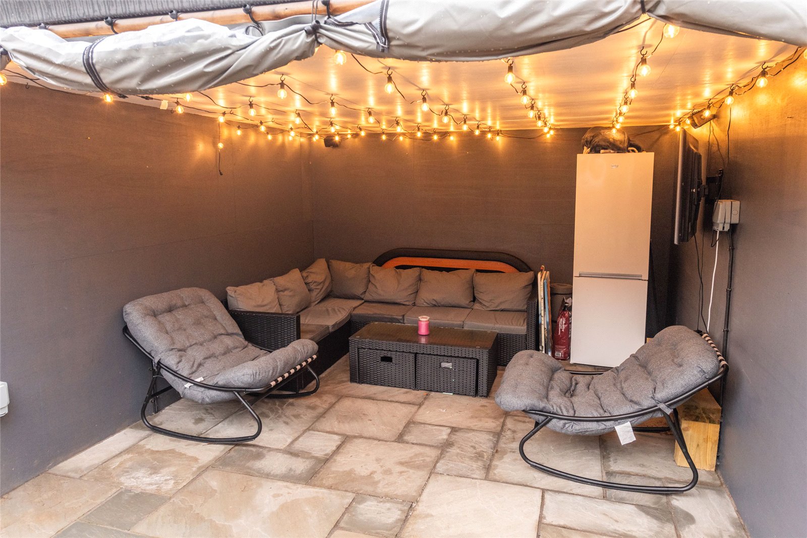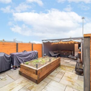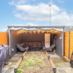 Externally, the property enjoys a pleasant front garden with a lawned area and decking, creating an inviting approach to the house. To the rear, the garden features a patio area ideal for outdoor seating, along with a garden studio offering excellent potential as a home office, gym, or hobby space. There is off-street parking positioned directly in front of the garage, providing added convenience.
