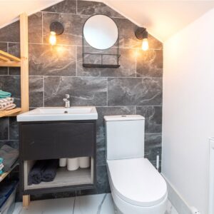 A staircase from the dining area leads to the upper level of the home, where a further double bedroom is located, along with a separate WC.