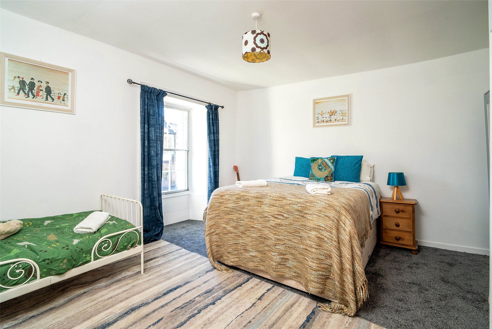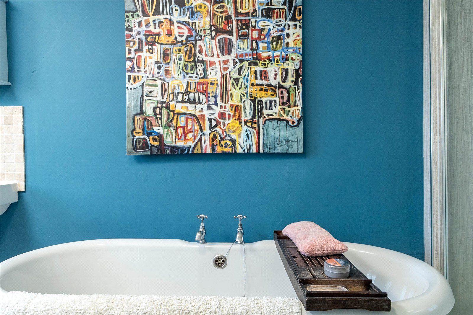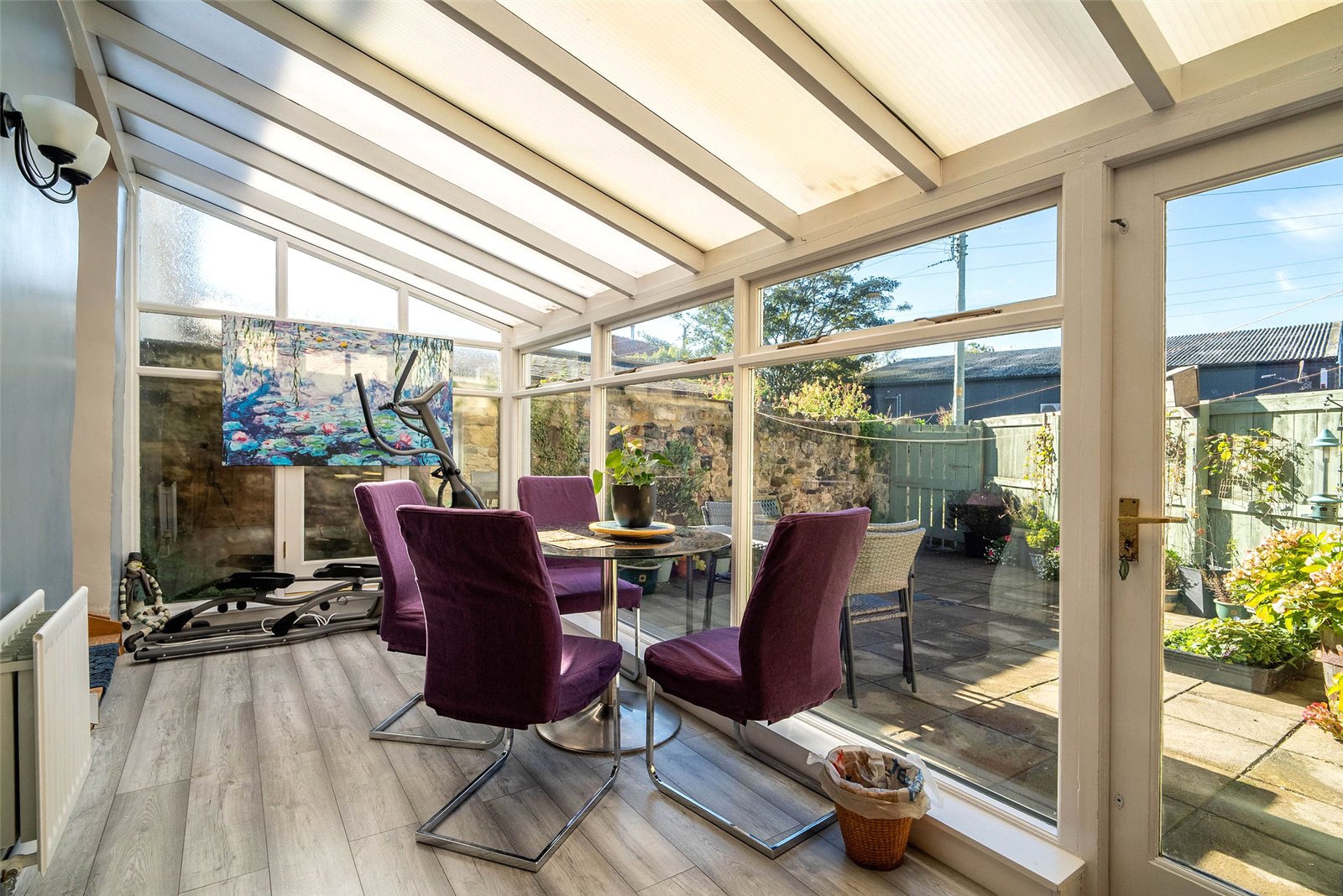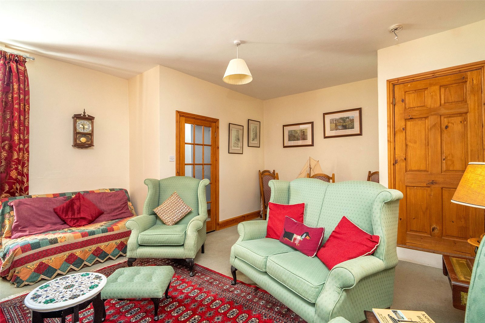Upstairs, the home offers three well-proportioned double bedrooms, two with built-in storage, and a stylish family bathroom complete with a roll-top bath and a separate shower.