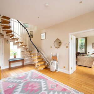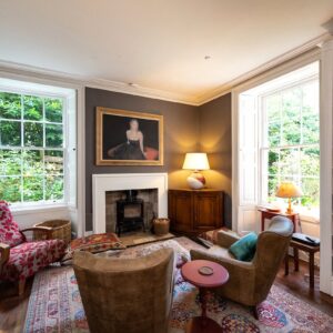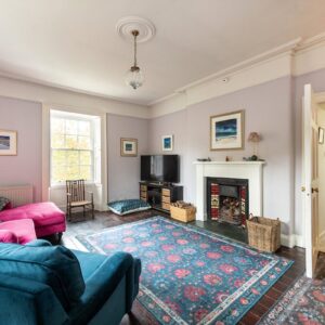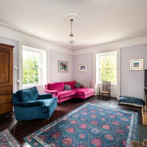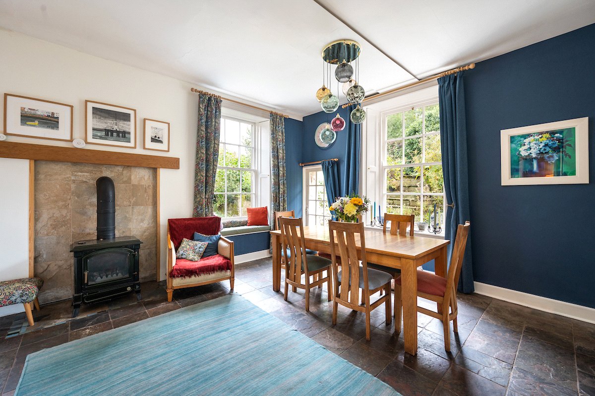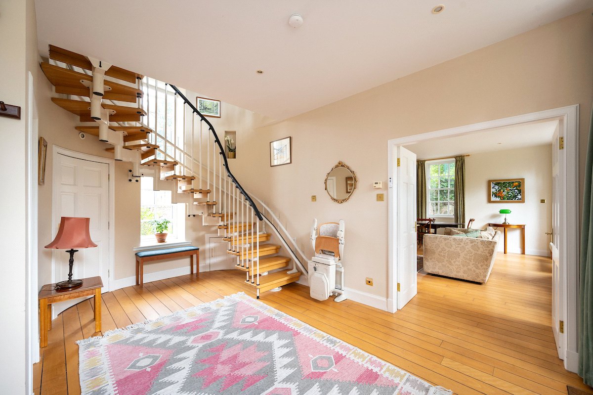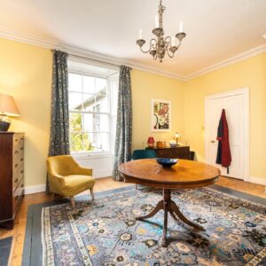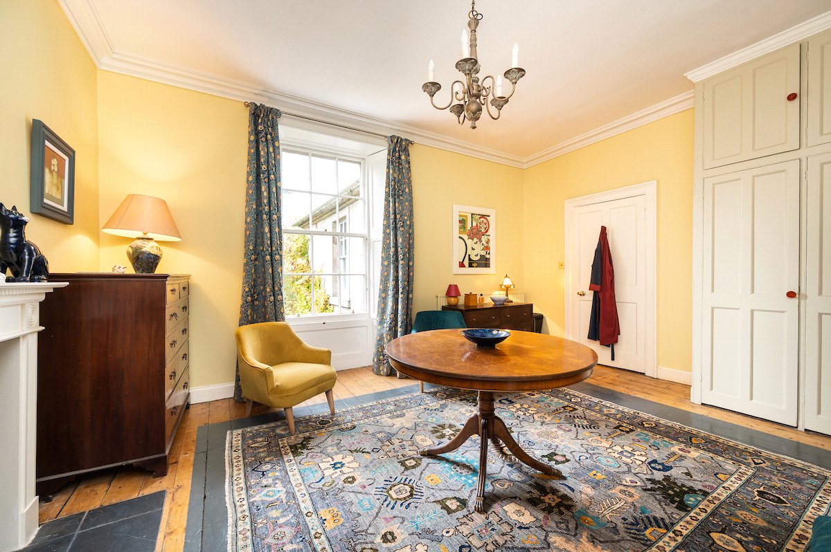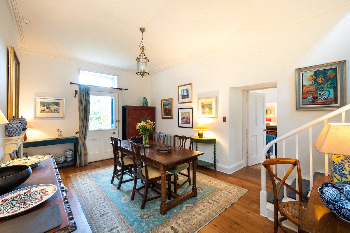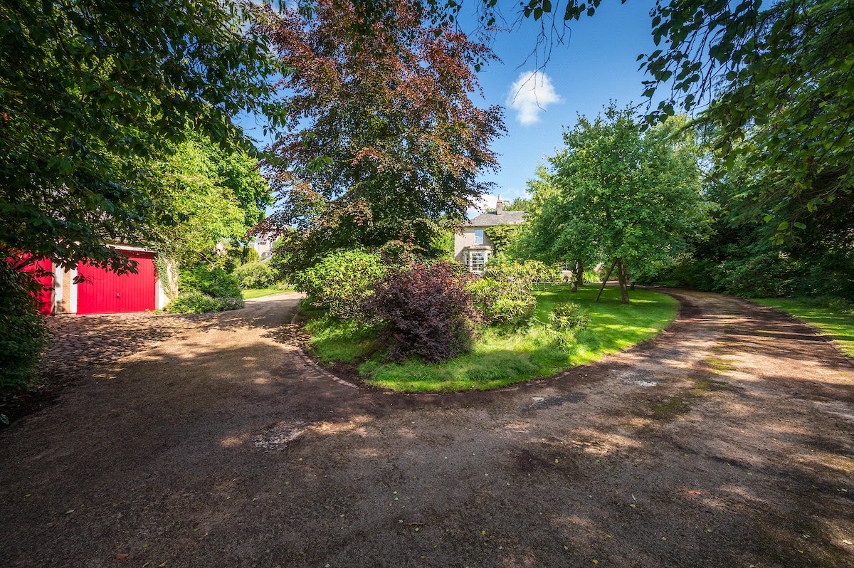 Set within generous landscaped and enclosed gardens, Haymount is a striking B-listed Georgian residence. Built in the early 19th century and formerly used as a local cottage hospital, the property has served as a cherished family home in recent decades. Accessed via wrought iron gates set into the garden wall and a sweeping driveway, the house sits proudly behind mature trees and lawns, its handsome stone façade, sash windows and Georgian symmetry offering timeless kerb appeal.