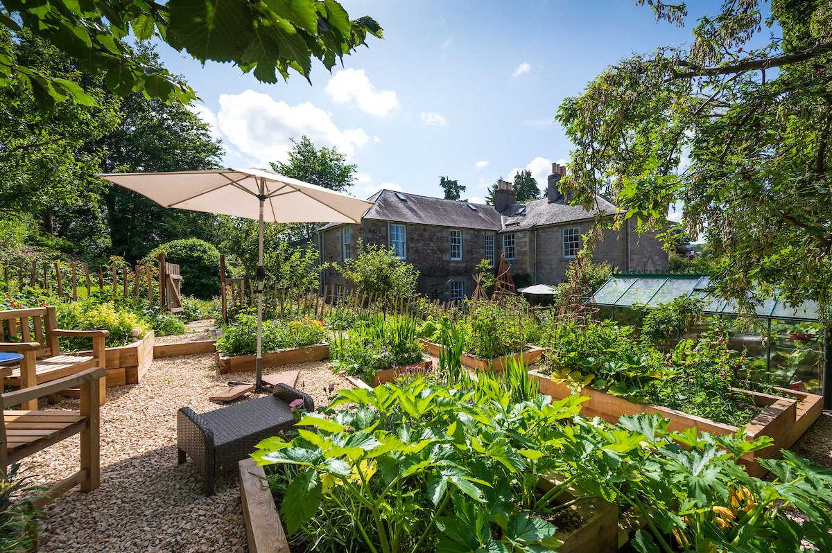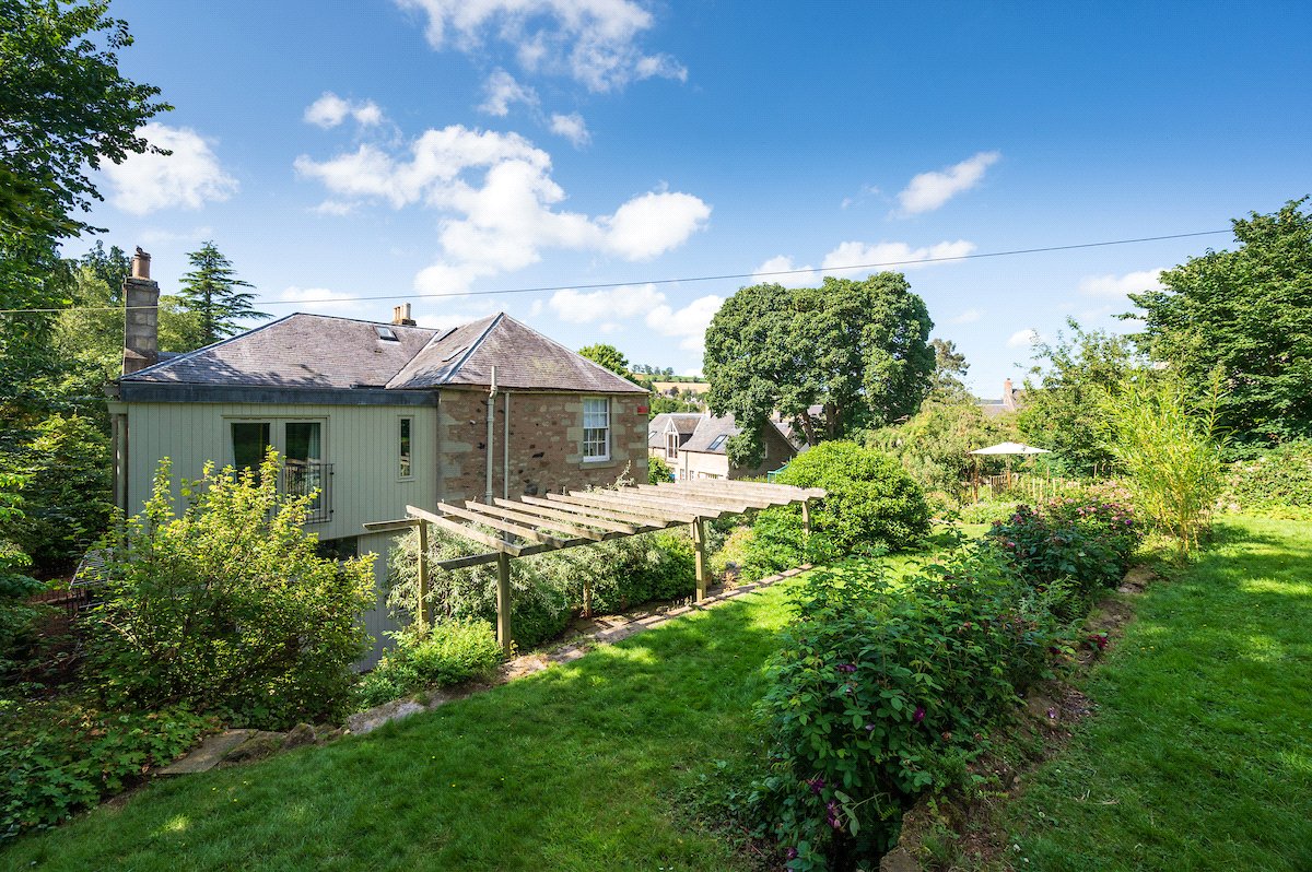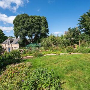 The generous plot is a standout feature, enclosed by stone walls and fencing for privacy. The property is entered through wrought iron gates into a circular driveway with a central lawn and specimen trees. To the rear, a landscaped kitchen garden includes raised beds, a greenhouse, potting shed, chicken run and a seating area, creating a peaceful rural atmosphere just a short walk from the amenities of Duns.