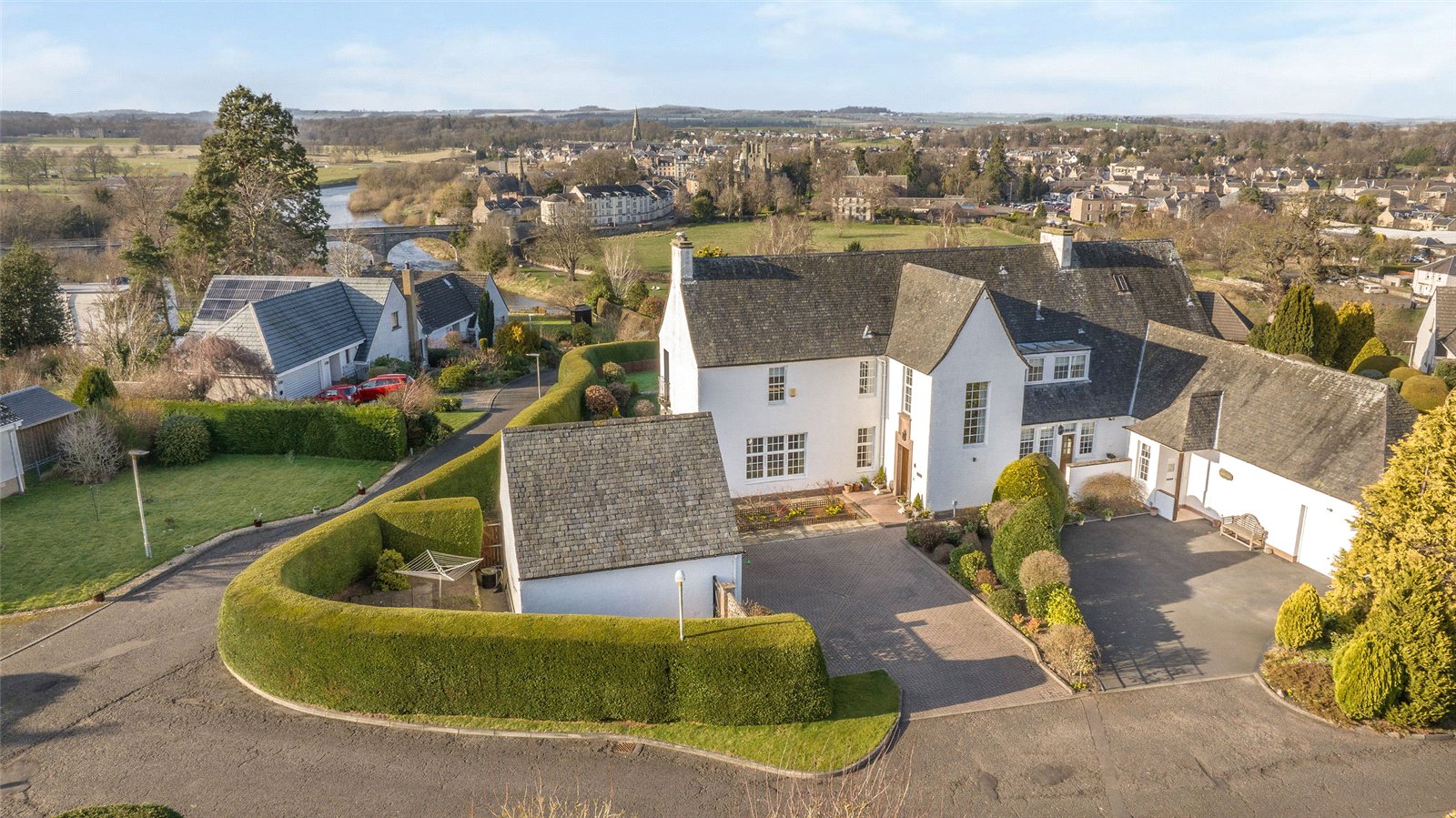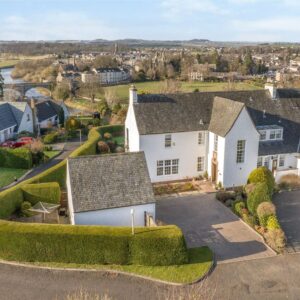 House on the Hill is an immaculately presented 4-bedroom home located in a prime elevated position, offering famous views of Kelso Abbey, The Junction Pool, Rennie’s Bridge, and the magnificent Floors Castle. This exceptional home provides expansive living spaces and is immaculately presented throughout. Set within generous garden grounds, the property features a large driveway and a double garage, all nestled in a peaceful, edge-of-town location, just a short stroll from the market square.