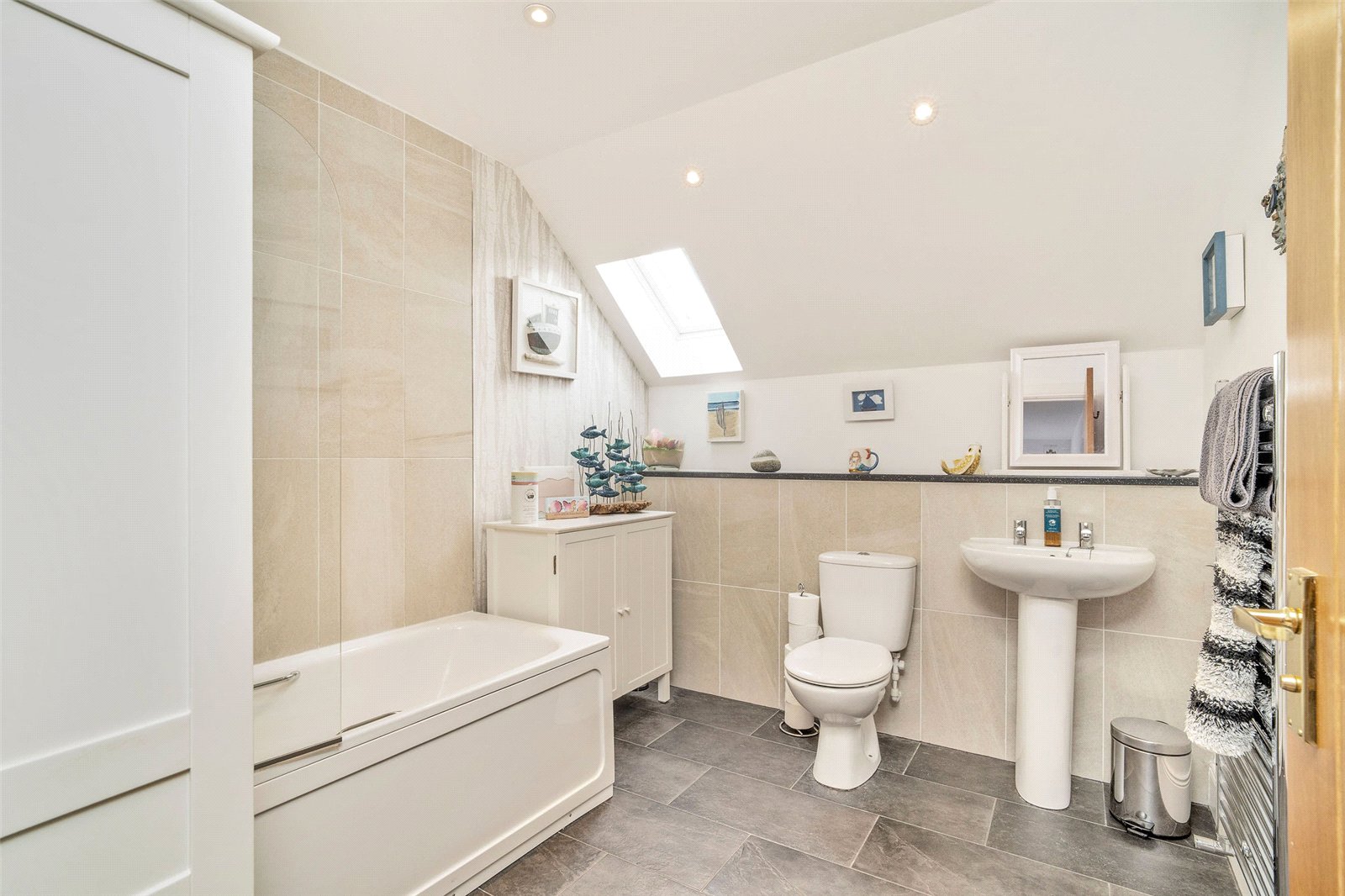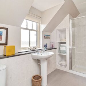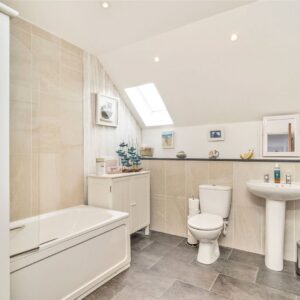The staircase leads to the first-floor landing which benefits from a Velux window drawing natural light into space. The principal bedroom is quietly positioned to the rear and features two built-in wardrobes along with a modern en-suite shower room. Two further double bedrooms, both with built-in wardrobes, are served by a stylish family bathroom, complete with over-bath shower. The hot water tank cupboard provides more convenient storage.