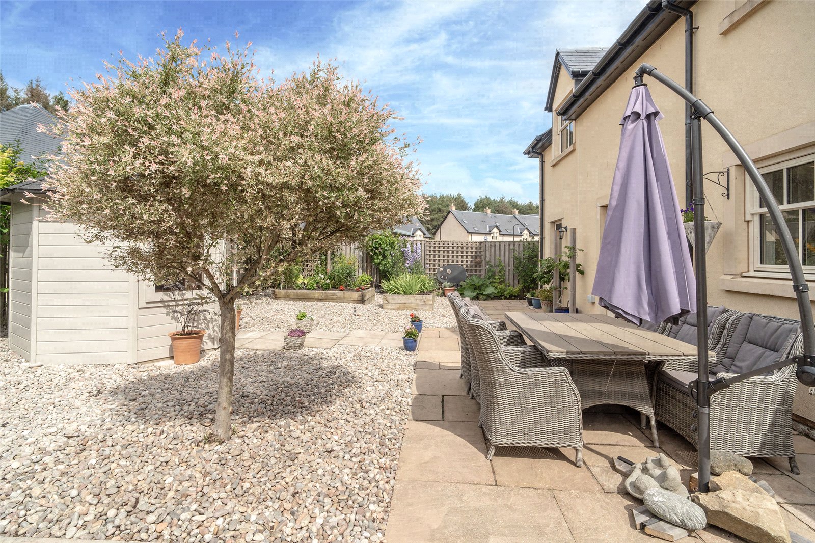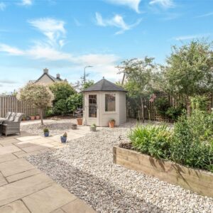 Externally, the front garden is laid to lawn with a rockery border, and a Monoblock driveway provides parking for two cars in front of the integral garage. The rear garden is a standout feature, beautifully landscaped and designed for easy maintenance consisting of a mix of sandstone paving, Edinburgh pebbles and raised sleeper beds filled with colourful planting. The garden is fully enclosed for privacy and includes a timber summerhouse and shed.