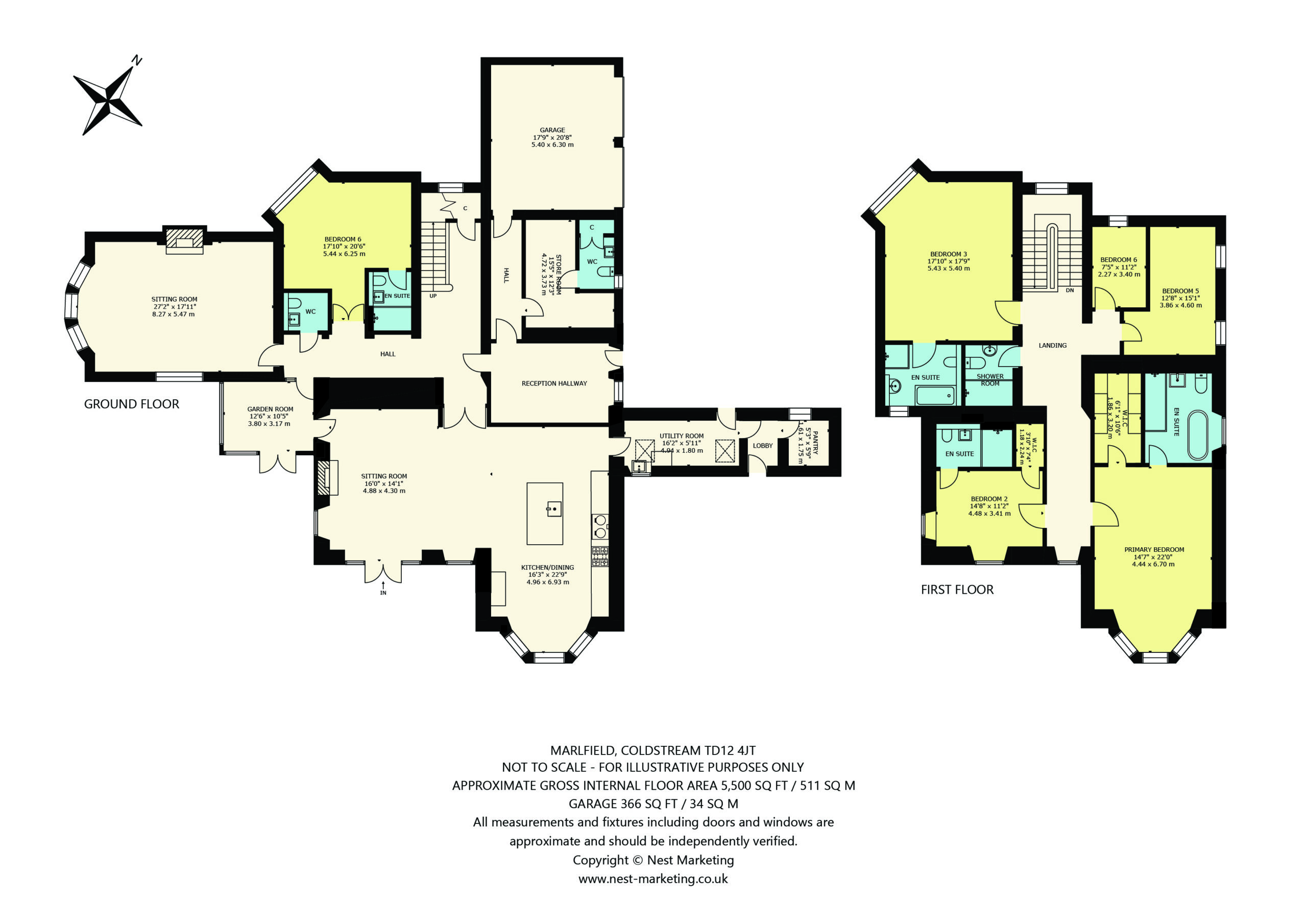Ground Floor – Reception Hallway, Sitting Room, Dining Kitchen, Garden Room, Bedroom 6 (En-Suite), Utility Room, Pantry, WC, Boiler Room / Storeroom with WC, Double Integral Garage