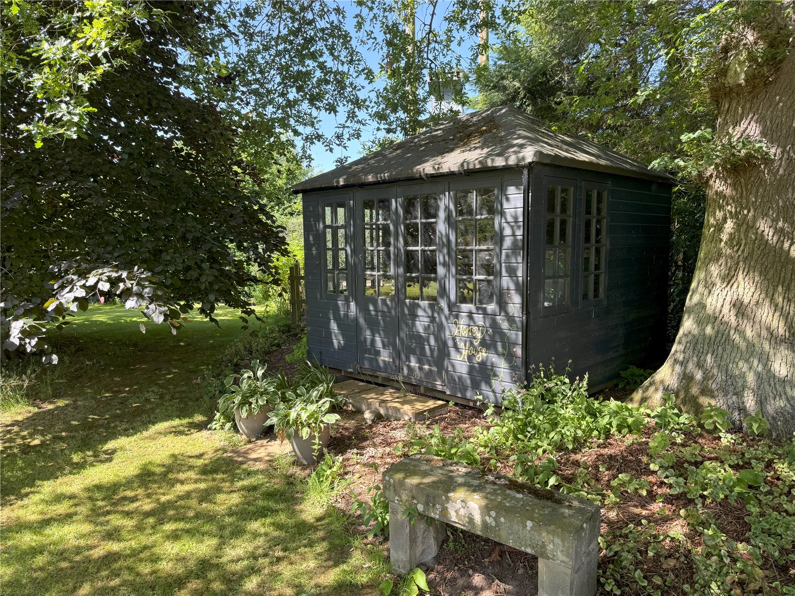 The gardens and grounds are equally impressive, creating a tranquil and beautifully landscaped setting. Expansive lawns, vibrant flower beds, and a picturesque pond provide a serene backdrop to the house, while a vegetable patch, summer house and two greenhouses offering opportunities for those with a passion for gardening. Next to the house is a separate paddock featuring a large, fully-hedged raised bed vegetable garden with a potting shed, a small orchard, and soft fruit cages. A section of the paddock has been landscaped for boules and has additional versatility and potential.