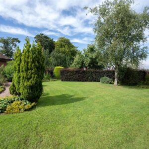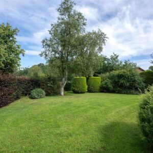 Externally, the home is complemented by a garage and an adjoining store room/workshop, perfect for storage or creative projects. The attractive garden wraps around the bungalow, offering mature planting, patio seating areas, and a private atmosphere ideal for outdoor dining or relaxation.