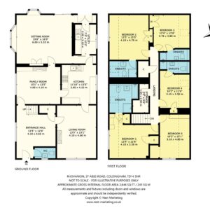 Rhovanion offers very comfortable, well-appointed family accommodation and extends to about 2,646 Sq Ft / 245 Sq M and comprises three lovely public rooms to include a drawing room, sitting room, and dining/entertaining room with feature ceiling. The ground floor further benefits from a dining kitchen/ breakfast room, utility room and cloakroom/WC. A central stair from the reception hallway leads to the first floor where lies four very comfortable double bedrooms, all with en suites, and further double bedroom which is currently being utilised as an office.
