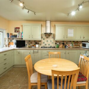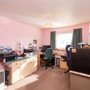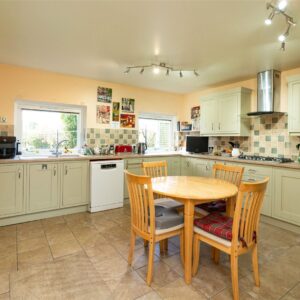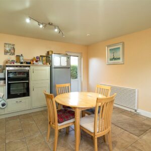 The ground floor offers an excellent layout for everyday living and entertaining. A welcoming entrance hall leads through to a spacious sitting room with triple-aspect windows and a wood-burning stove, creating a bright yet cosy setting for relaxation. The dining kitchen, with attractive in-frame cabinetry, provides a practical and sociable space for cooking and family meals, while a separate dining room offers further flexibility for more formal dining or larger gatherings. Also on this level is a double bedroom, currently used as a study, along with a convenient WC. A useful utility room and an additional office/study add further practicality, making the ground floor highly adaptable to a variety of needs.