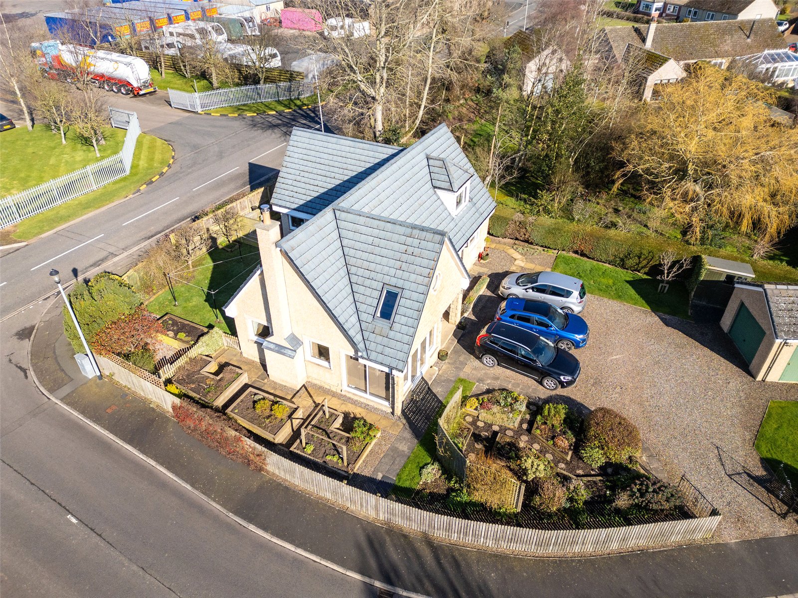 Garden and Grounds - Detached Garage, Ample Off-Street Parking, Secure Gardens, Raised Beds, Mature Fruit Trees, Patio area.