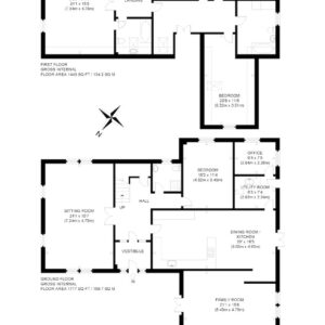 Ground Floor - Entrance vestibule, hallway, kitchen/dining room, family room, sitting room, downstairs double bedroom, shower room, utility and office