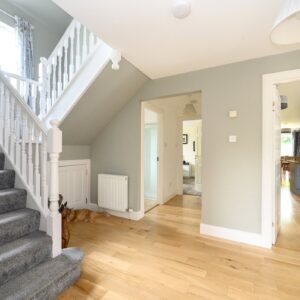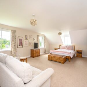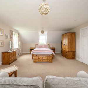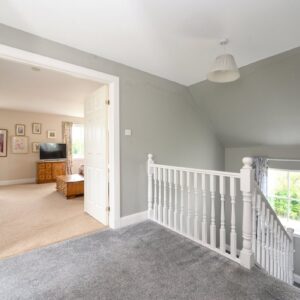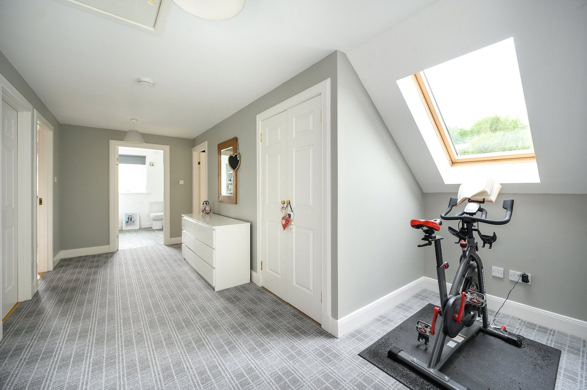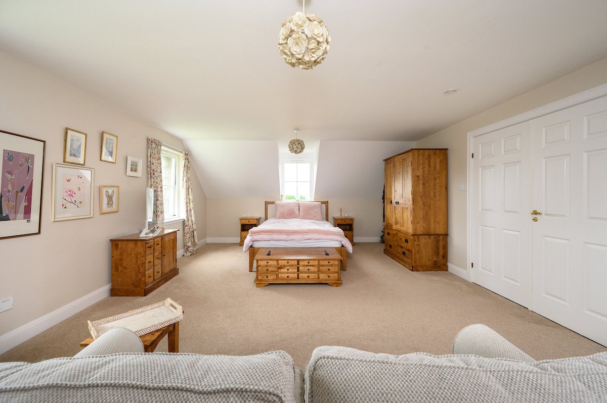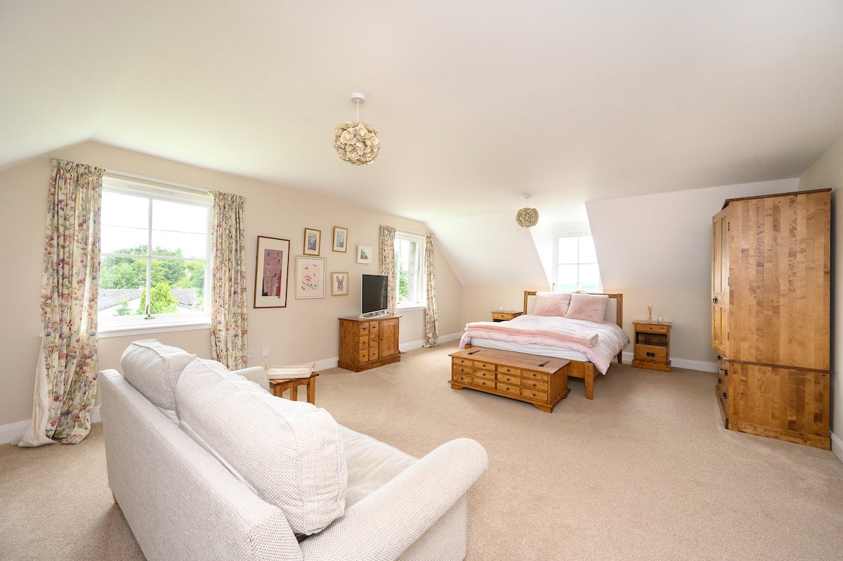 On the first floor there is a large principle ensuite bedroom with views to the south, followed by a large landing with three further double bedrooms, a family bathroom and storage cupboard. All the bedrooms offer lovely views of the surrounding countryside.