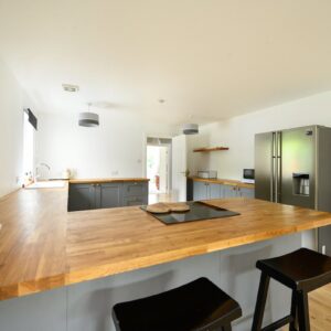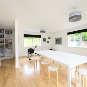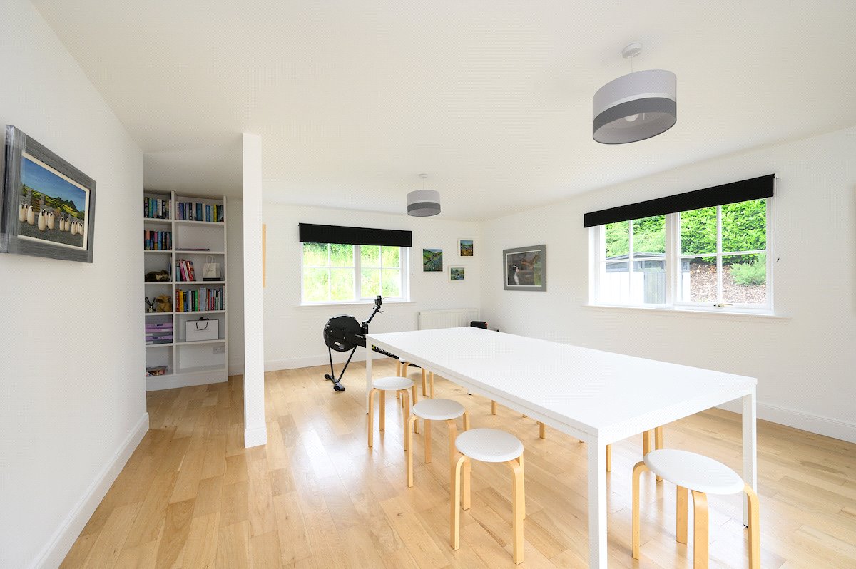 The house offers a great layout for modern family living with a triple aspect sitting room, a well-proportioned kitchen/dining room with French windows onto decking which leads to the rear garden. The adjoining family room has a triple aspect and French windows onto decking at the front of the house. There is a useful utility and office off the kitchen and a downstairs bedroom/or further living room and shower room.