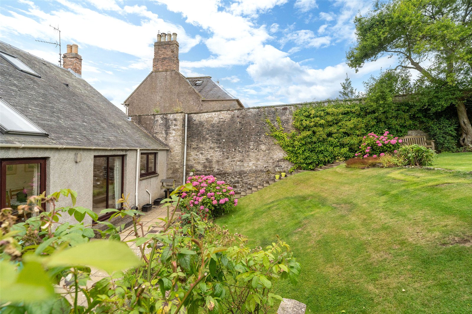 Tythe Cottage is a substantial and beautifully presented five-bedroom home, ideally positioned in the popular town of Duns in the scenic Scottish Borders. Set over four spacious levels, it offers generous living accommodation, a mature walled garden, private off-street parking and an integral garage, making it a perfect choice for families seeking space, comfort and character.