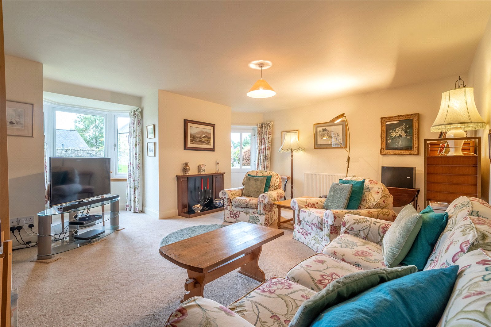 On entering the property, a welcoming vestibule provides access to the integral garage and leads through to a central hallway. The generous sitting room features a large bay window, creating a bright and inviting space for relaxing or entertaining, while a convenient shower room adds practicality on this level.