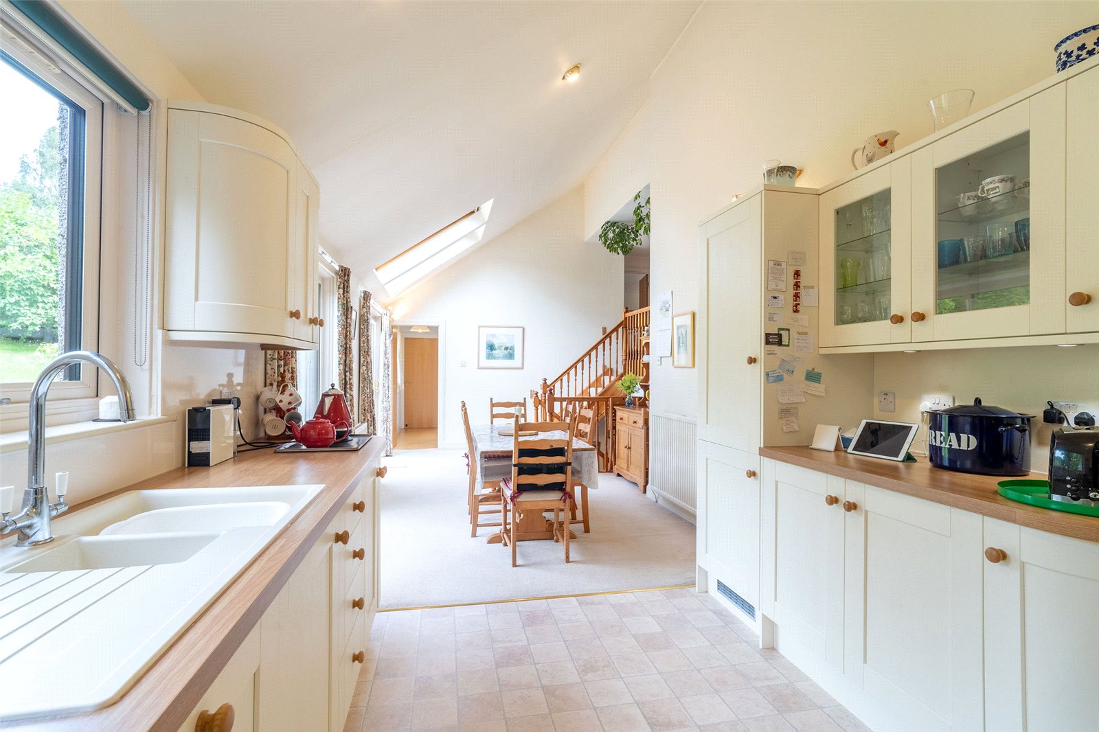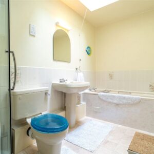 Upstairs, the heart of the home lies in the spacious dining kitchen, fitted with timeless cream shaker cabinetry and offering direct access to the rear garden through patio doors, ideal for summer dining and family gatherings. A separate utility room and a well-appointed family bathroom with both a bath and separate shower complete this floor.