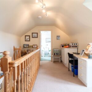 The next level hosts three generously sized bedrooms, all with built-in storage, ensuring ample space for family life. Above this, the top floor provides two additional bedrooms, a spacious landing area, and useful eaves storage perfect for guest rooms, a home office, or flexible family use.