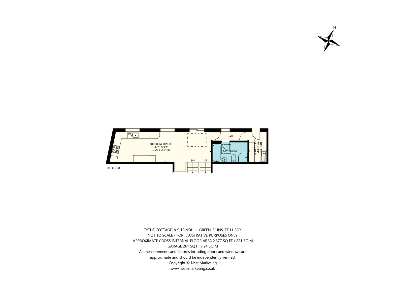 First Floor: Open-Plan Kitchen-Dining Room, Hall, Utility Room, Bathroom.